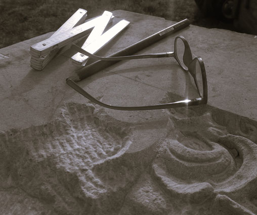zeichnen ein bisschen und konkretisieren die Ausführung in Stein.
